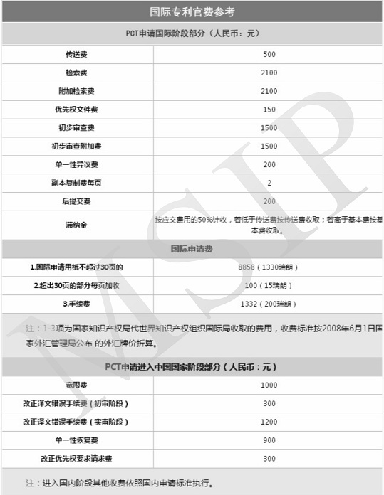 國(guó)際專利官費(fèi)參考